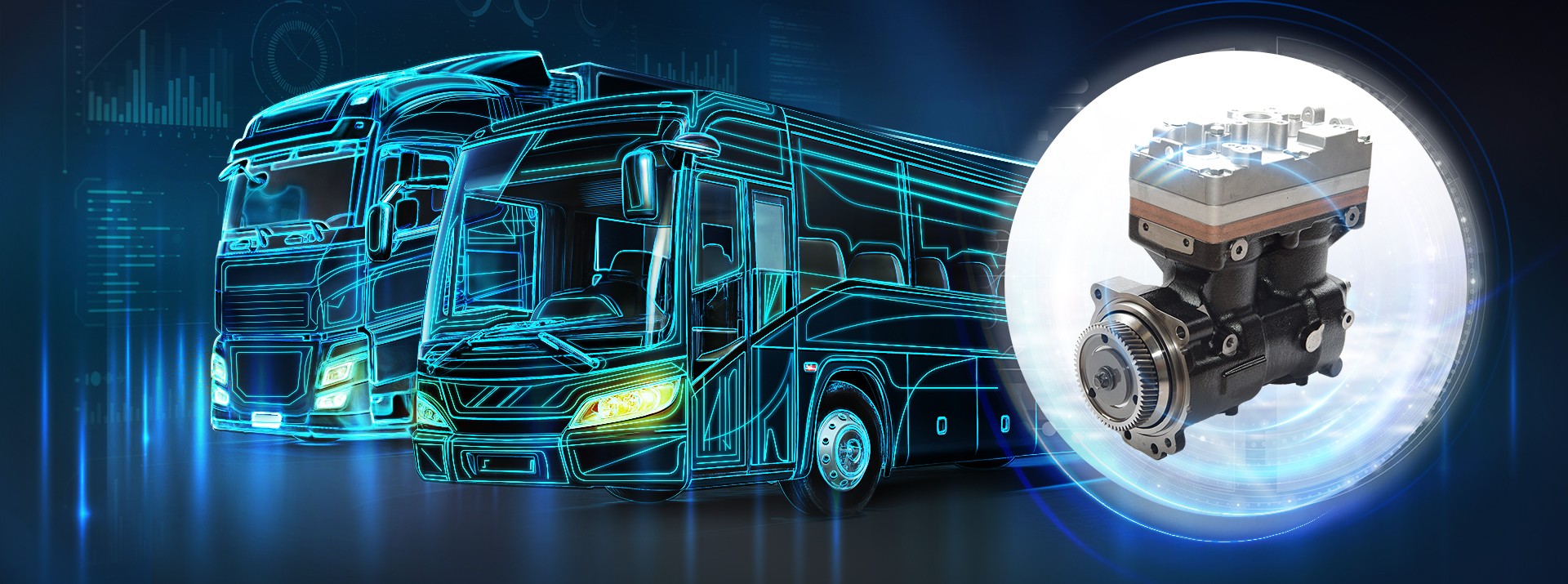 Komprimierte Luft ist die Basisenergie aller pneumatischen Bremssysteme in Nutzfahrzeugen. Die Hauptkomponente bei der Luftbeschaffung ist der Kompressor selbst. Anders als bei Kompressoren mit herkömmlicher Technologie vermeidet der „abschaltbare“ Kupplungskompressor Leerlaufphasen. Stattdessen entstehen durch die Trennung des Kraftflusses zwischen Motor und Kompressor Ruhephasen, in denen Energie gespart und der Verschleiß der Kompressionseinheit reduziert wird. Für ein langes Leben des Kompressors!