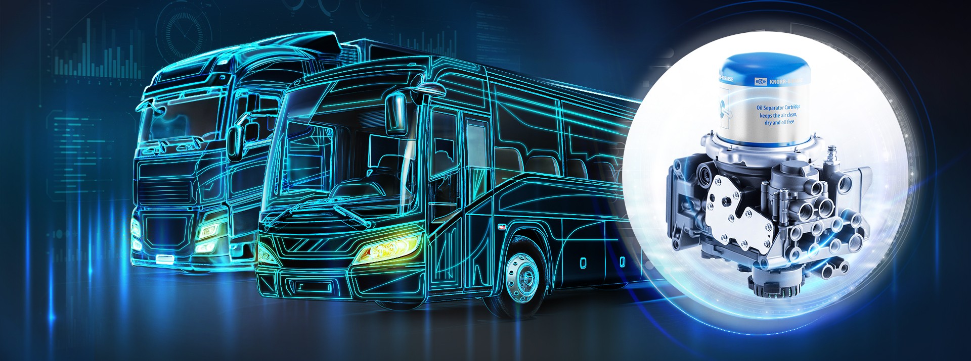 Cleaning the air delivered by the compressor through drying and oil separation is the most important task for air control in pneumatic systems. Electronic Air Control (EAC) adds an intelligent controller to the process. This is an ideal combination for intelligent compressed air management in commercial vehicles. Market leader Knorr-Bremse has been offering electronic air control since 2004 and has sold over a million EAC in accordance with the highest safety standards. Field tested software and parts from Knorr-Bremse deliver measurably lower fuel consumption, for more safety and comfort.