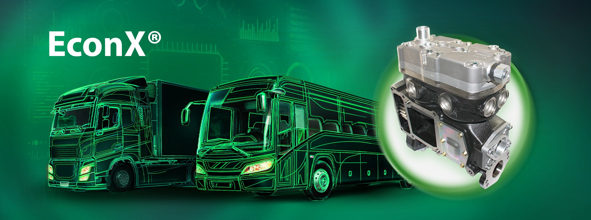 Knorr-Bremse EconX air compressors supply pneumatic systems reliably and safely with the operating pressure they need – just like new service compressors. This makes them ideal for economical repairs for older commercial vehicles. Vehicle operators and vehicle fleet owners benefit from lower costs and using cost-efficient EconX products in older vehicles delivers a true competitive advantage. Safe, more economical driving.